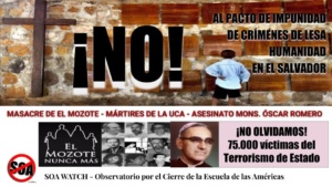 SOA Watch, organización fundada en los Estados Unidos, quiere expresar nuestra alta preocupación que la Asamblea Legislativa pudiera aprobar una Ley de Impunidad que en términos prácticos anularía el derecho a la justicia y favorecería a los violadores de los derechos humanos del conflicto armado.