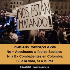 Preocupados por esta realidad SOA Watch dirigió una carta al presidente Iván Duque donde le solicitan al Gobierno de Colombia “proteger la integridad de todas y todos los líderes sociales y de las y los defensores de derechos humanos y detener a los grupos paramilitares que siguen operando con total impunidad”.