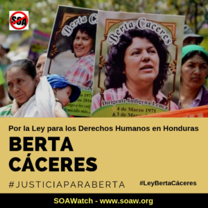 El 2 de diciembre de 2019, un tribunal hondureño dictó las condenas a siete hombres acusados por el asesinato de la visionaria líder del movimiento social hondureño Berta Cáceres. Esto sucedió, un año después de declararlos culpables. Entre los condenados, está Douglas Bustillo -un graduado de la Escuela de las Américas (SOA) y ex jefe de seguridad de la empresa de represas hidroeléctricas DESA- como también su compañero, graduado de SOA, el Mayor Mariano Díaz. Díaz fue entrenado por los Estados Unidos no sólo en Fort Benning, sino también en la lucha contra el terrorismo en la Academia Interamericana de la Fuerza Aérea en Texas, y formó parte de la guerra liderada por Estados Unidos en Irak. Fue comandante del ejército, instructor de la Policía Militar de Honduras, y jefe de inteligencia militar del Primer Batallón de Honduras. Seguir leyendo…