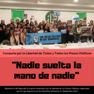 “Nadie suelta la mano de nadie” era la consigna de las y los estudiantes brasileros en épocas de dictadura militar, para defenderse del Ejercito; y “Nadie suelta la mano de nadie” es la consigna que adoptamos como consigna de nuestra Campaña Continental por la Libertad de Todas y Todos los Presos Políticos”, es una de las resoluciones del Segundo Encuentro Americano por la Libertad de las y los Presos Políticos realizado recientemente en Argentina. Seguir leyendo…
