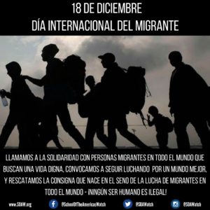 Este 18 de diciembre, celebramos el Día Internacional del Migrante. En primer lugar, SOA Watch expresa nuestro amor y solidaridad con todas las personas que se ven obligadas a huir de sus países de origen….